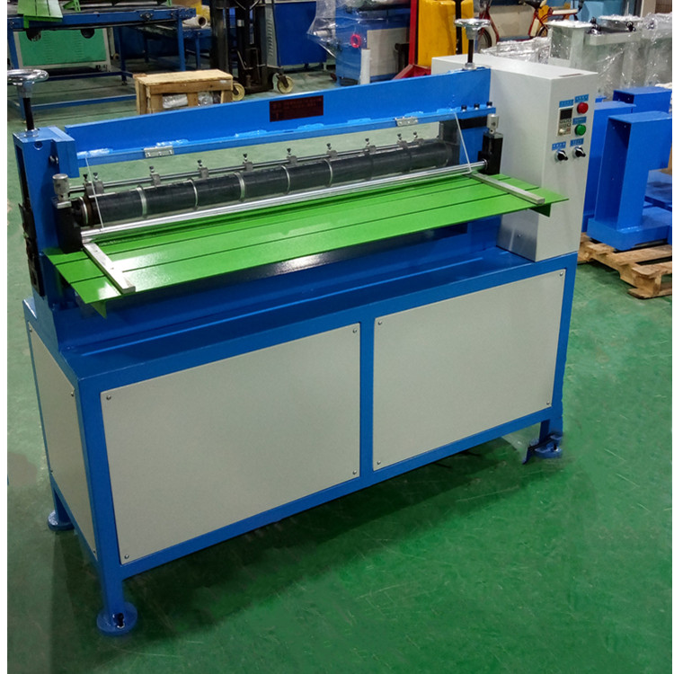 適合橡膠、皮革、塑料,PVC,PE,PU和皮料等之多刀片狀分條,一次可將整匹材料分完成卷,此機可視需要選擇配置。